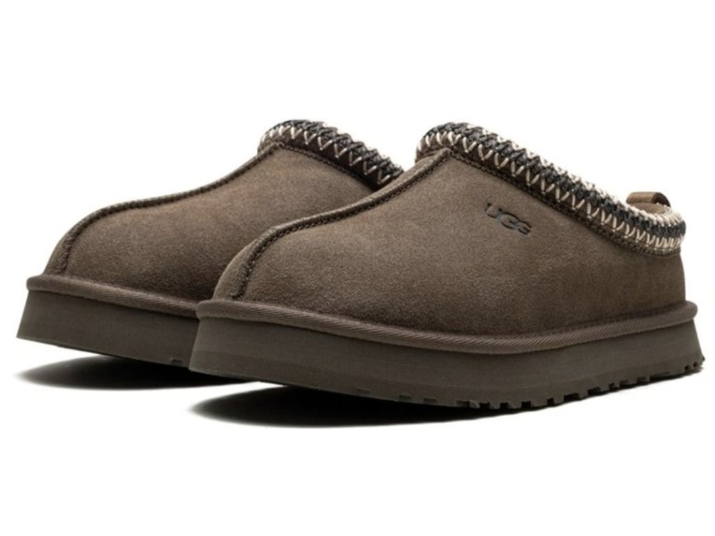 Dámské UGG Tazz Slipper v oblíbeném odstínu „Hickory“ představují dokonalé spojení klasiky a moderního stylu. Prémiový semišový svršek v teplém hnědém tónu doplňuje výrazný pletený lem a zvýšená platformová podrážka, která dodává modelu trendy streetwearový vzhled.