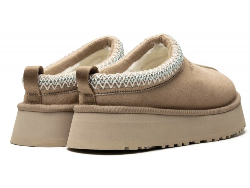 Uvnitř se o maximální komfort stará podšívka z měkké ovčí vlny UGGplush™, která udržuje nohy v teple po celý den. Lehká platforma z EVA pěny zajišťuje pružný krok a stabilitu, zatímco podrážka Treadlite by UGG™ poskytuje spolehlivou trakci i mimo domov. UGG Tazz „Sand“ (W) jsou dokonalou kombinací luxusu, pohodlí a stylu – ideální pro každodenní nošení.